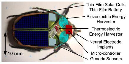 La DARPA (Defense Advanced Research Projects Agency) finance actuellement des recherches menées par Ethem Erkan Aktakka de l’université du Michigan à des fins militaires. Ce jeune chercheur travaille avec ses collègues de l’Utah pour développer un coléoptère piloté à distance à l’instar d’un mini-drone.