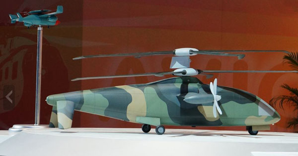 Une maquette d’un futur hélicoptère « Pionnier 01 » était aussi présentée. Ses caractéristiques précisent qu’il s’agit d’un hélicoptère à grande vitesse doté d’un rotor coaxial rigide, de deux ailes munies de turbopropulseurs, permettant de tenir le vol stationnaire, à basse vitesse, et d’un train d’atterrissage tricycle. Un concept qui rappelle celui du X3 d’Eurocopter.