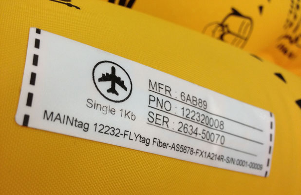 Le Flytag a été conçu pour une utilisation sur métal en zones non-pressurisées et en cabine : il est donc aisément applicable sur les sièges. De plus, il peut supporter des pics de températures atteignant 250°C et permet l’identification électronique des équipements durant leur cycle de vie.