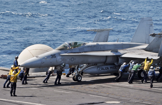 Le porte-parole du Département de la défense, l’amiral John Kirby, a confirmé le 8 août que deux avions F/A-18 Hornet avait largué des bombes de 500 livres à guidage laser sur l’artillerie des combattants islamistes utilisée pour bombarder les forces kurdes d’Arbil dans la matinée.