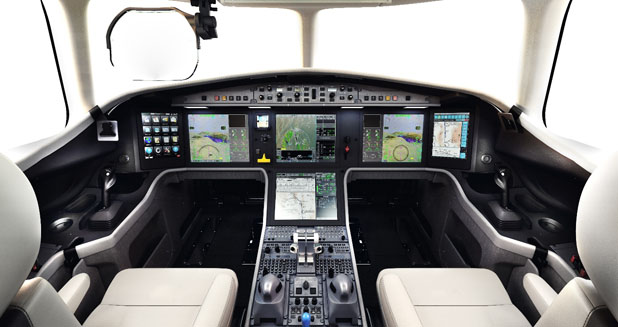 L’une des spécificités du nouveau jet privé se situe dans le poste de pilotage doté de la technologie d’affichage tête haute (HUD) fournie par Elbit Systems.