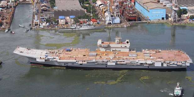 Le Projet 71 du programme IAC (Indigenous Aircraft Carrier) a franchi une nouvelle étape le 10 juin avec le désamarrage du Vikrant sur le chantier naval de Cochin Shipyard Limited (source : Indian Navy).