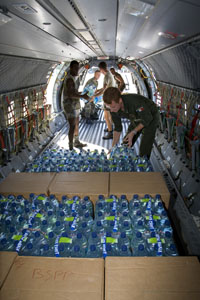 Compte tenu des dégats considérables occasionnés sur l’île et de l’anarchie ambiante avec des milliers de blessés, il n’est sans doute pas facile d’atterrir n’importe où et de trouver un champ plat et dégagé sur quelques centaines de mètres. En outre, il faut pouvoir décharger le matériel et l’acheminer vers la population rapidement ce qui implique que la zone soit accessible par route. Concernant les hélicoptères, les américains larguent effectivement des vivres mais ce genre d’opération est délicate (risque de violence entre civils pour se partager la nourriture comme en Somalie dans les années 90).