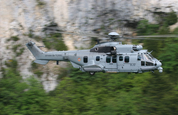 L’EC725 est le dernier-né de la famille Cougar. Il est propulsé par 2 turbines Turbomeca Makila 2A, et se distingue par un rotor principal de type sphériflex à cinq pales et une tourelle Flir qui lui donne une capacité d’intervention nocturne et en tout temps. Il peut voler durant 5h30 et transporter jusqu’à 29 passagers, en plus de l’équipage (2 hommes).